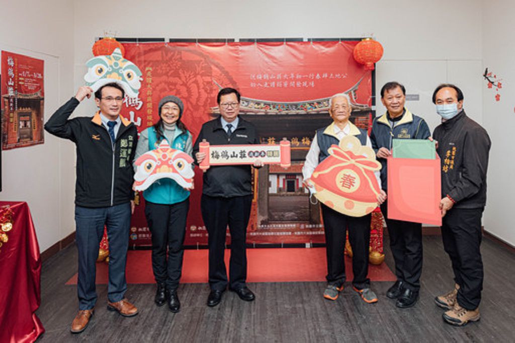 桃園市長鄭文燦於1月7日上午前往大溪區,出席「梅鶴山莊過新年」走讀梅鶴山莊與頭寮開發現場特展開幕式。鄭市長表示,大溪頭寮「梅鶴山莊」是大溪的重要文化資產,與頭寮地區的開發密不可分。大嵙崁文教基金會以農曆春節為主題,舉辦「「梅鶴山莊過新年」特展,即日起至3月28日,在大嵙崁故事館及桃園市立圖書館康莊分館展出,邀請民眾跟著梅鶴林家腳步前進頭寮「行春」,認識梅鶴特有韭菜糕、前進廟宇祈求好運、探訪大溪山水美景,透過歷史縮影閱讀大溪及頭寮的開發歷史。